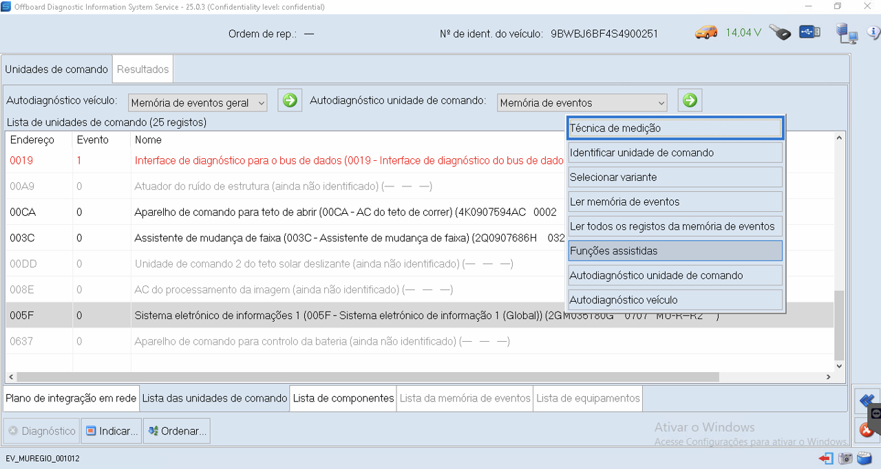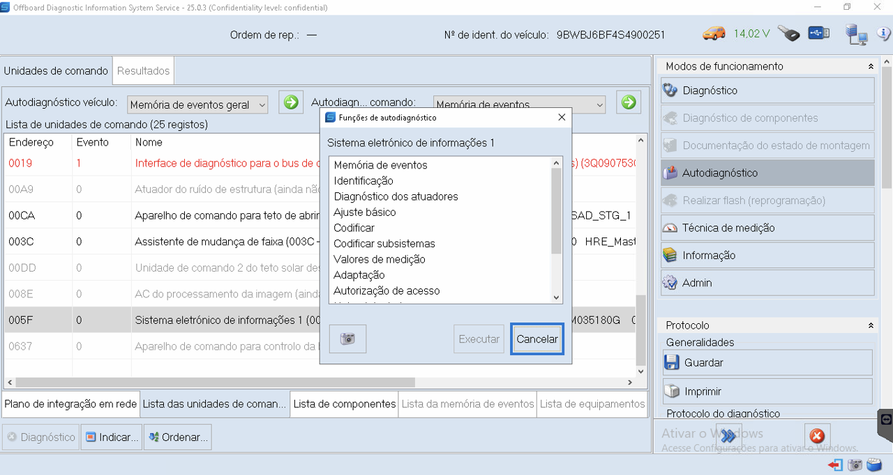 - Consulte manual de instruções VAS/ODIS para maiores informações e dúvidas.