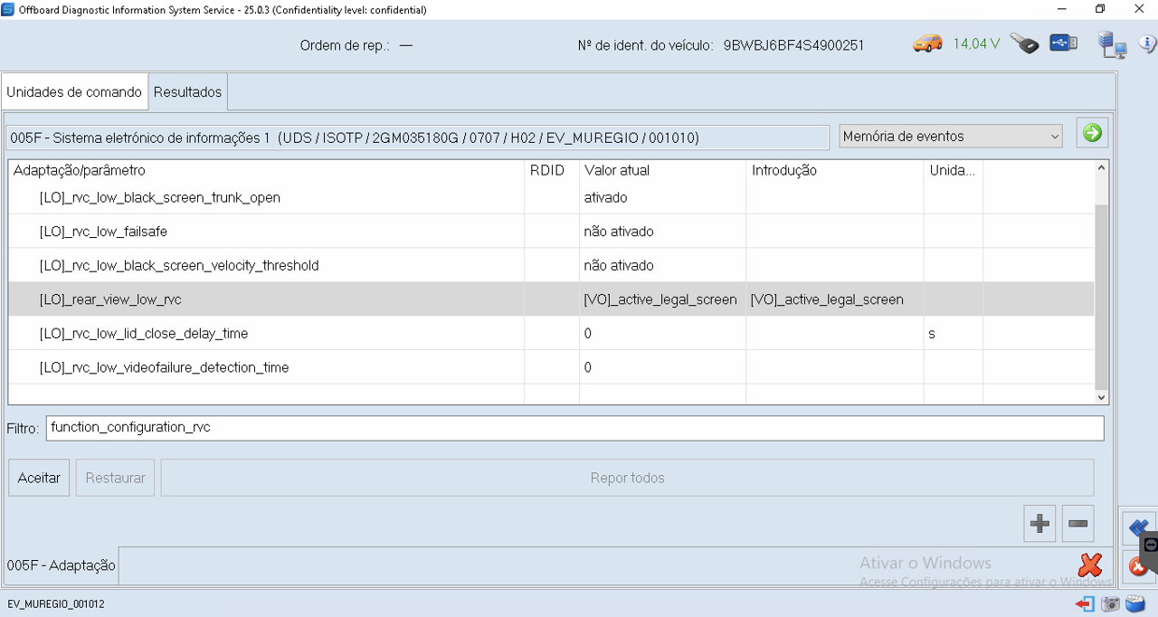 4 - Utilize a barra de rolagem para encontrar e selecionar o parâmetro “[LO]_rear_view_low_rvc”. Clique com o botão direito do mouse na área em branco referente a “introdução”, então selecione “[VO]_active_legal_screen” (Fig.3);